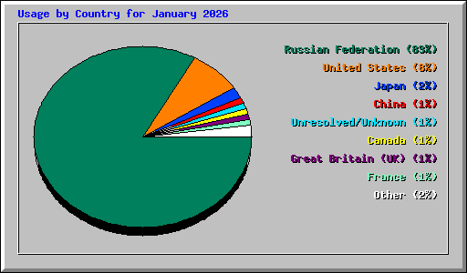 | 11 | 2 | 0.02% | 10 | 0.14% | /stats/ctry_usage_202601.png |